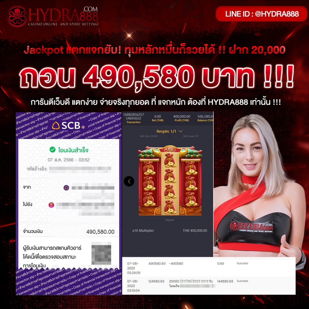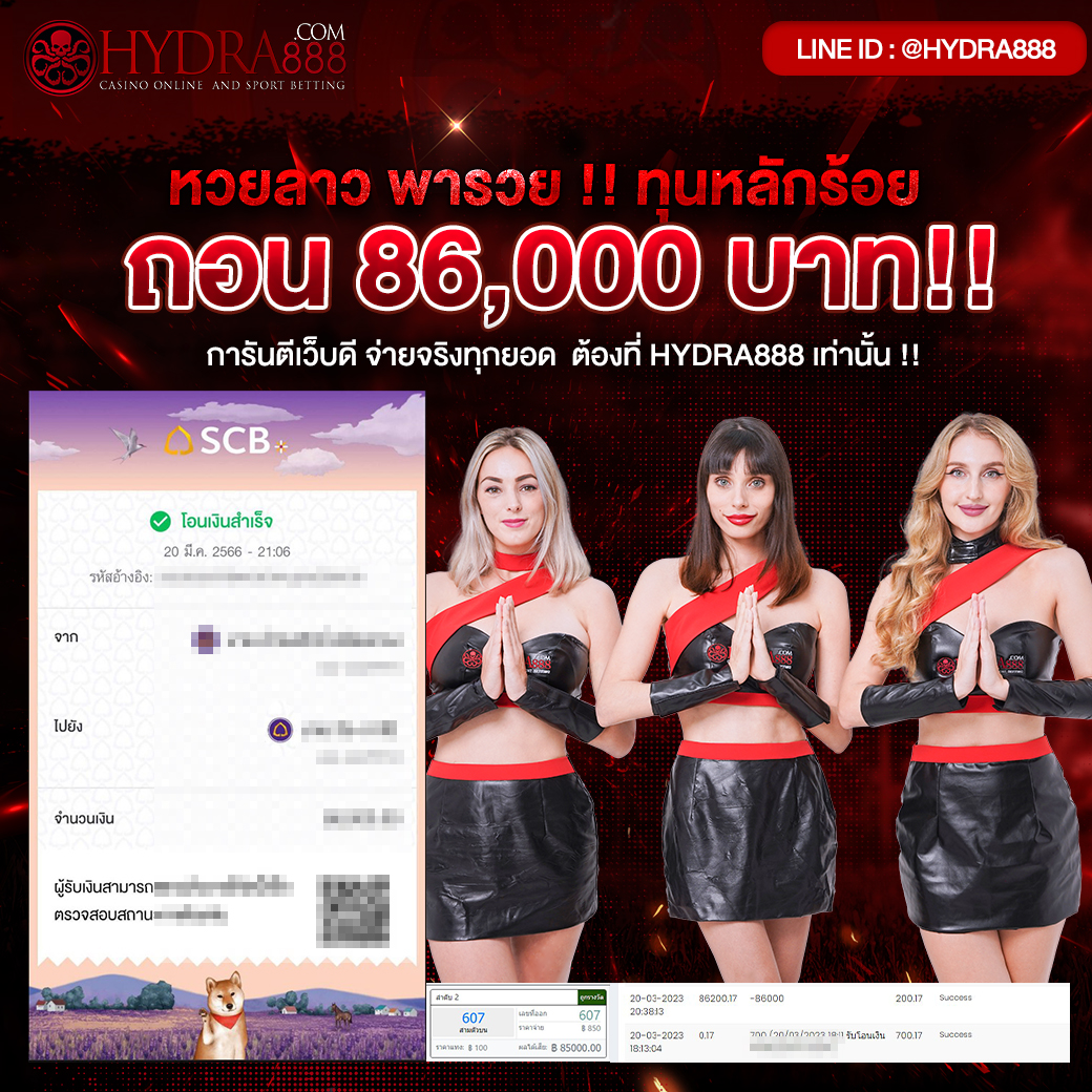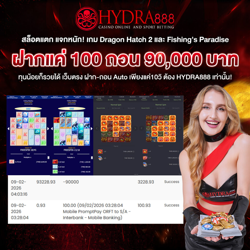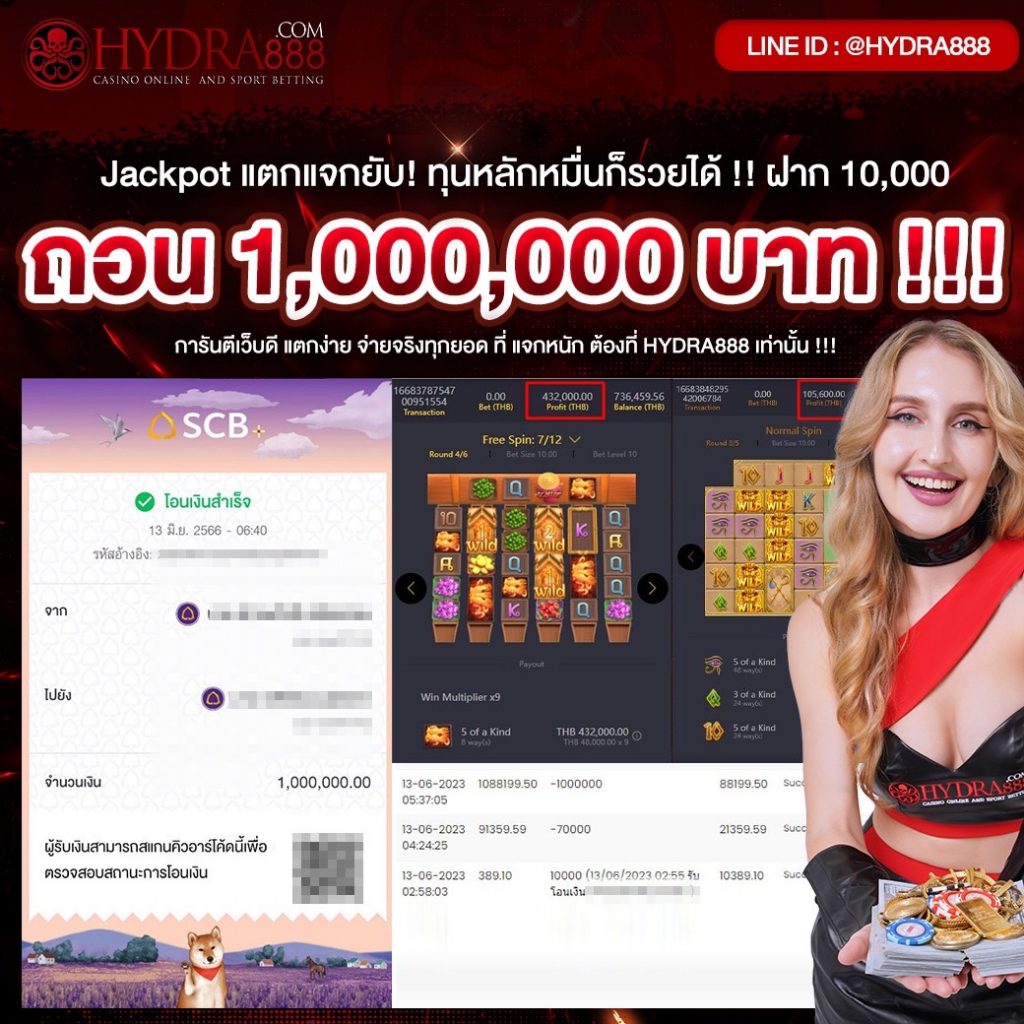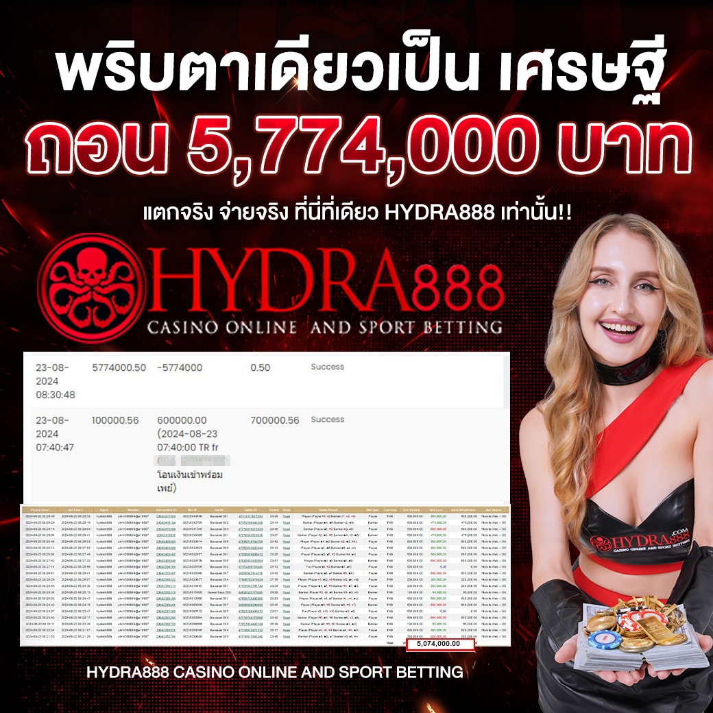 ยินดีต้อนรับลูกค้าทุกท่าน ด้วยความมั่นคงของเว็บ HYDRA888 การันตียอดถอน ไม่ว่าจะทุนน้อยทุนมาก ก็กลายเป็นเศรษฐีเงินล้านได้ ด้วยระบบฝาก-ถอน อัตโนมัติ ลูกค้าสามารถทำรายการเองได้ที่หน้าเว็บ ไม่ต้องรอแอดมินทำรายการ ไม่ว่าจะยอด แสน ยอดล้าน กี่ล้านเราก็จ่าย ยืนยันด้วยภาพโปรโมท หลักฐานการโอนจริง ได้จริง รวยจริง ที่ HYDRA888.COM