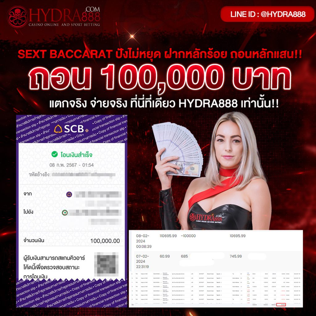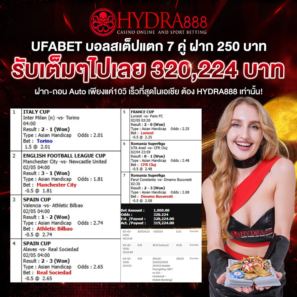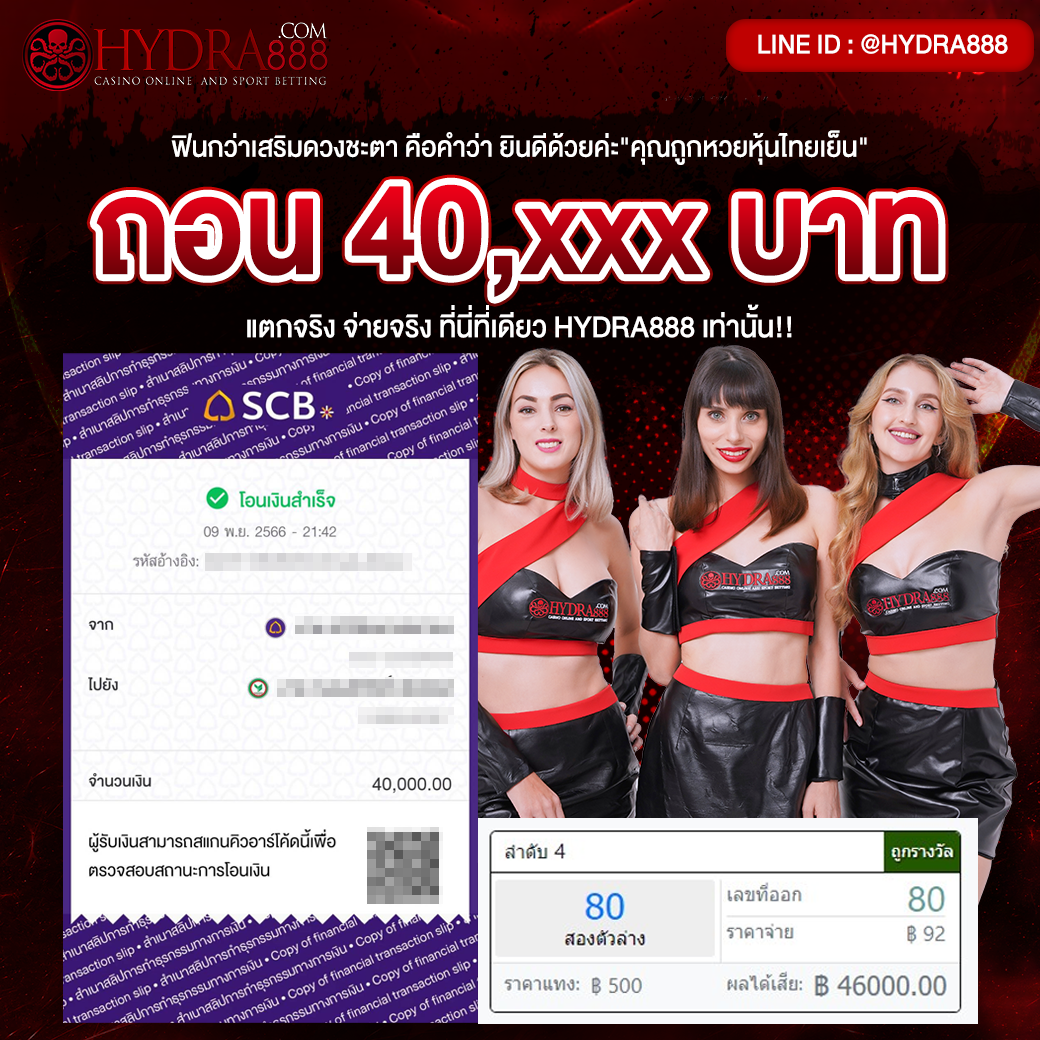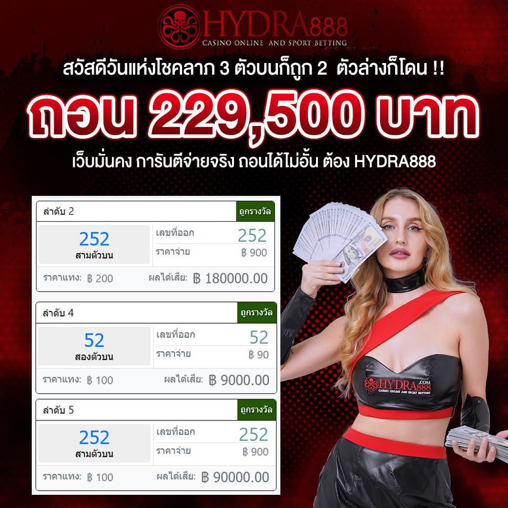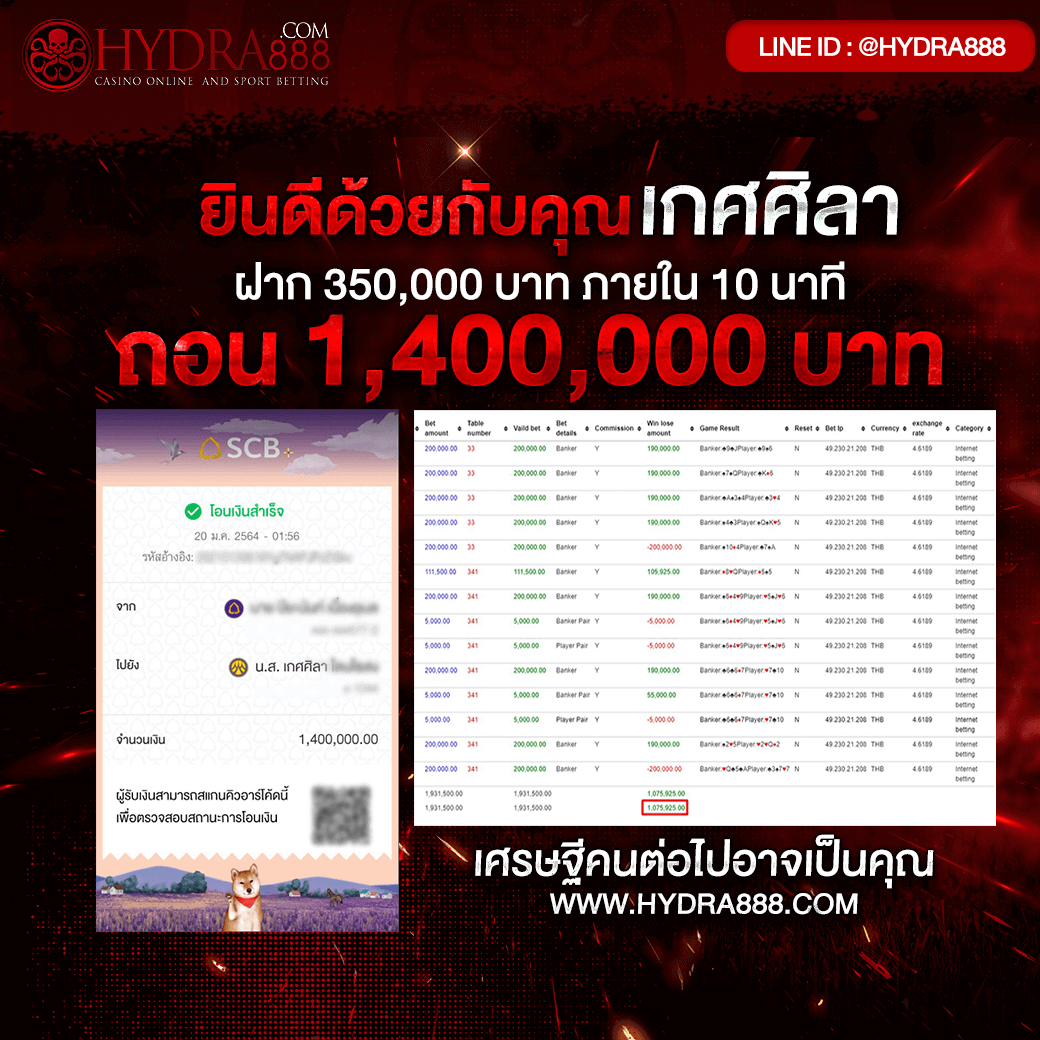 ยินดีต้อนรับลูกค้าทุกท่าน ด้วยความมั่นคงของเว็บ HYDRA888 การันตียอดถอน ไม่ว่าจะทุนน้อยทุนมาก ก็กลายเป็นเศรษฐีเงินล้านได้ ด้วยระบบฝาก-ถอน อัตโนมัติ ลูกค้าสามารถทำรายการเองได้ที่หน้าเว็บ ไม่ต้องรอแอดมินทำรายการ ไม่ว่าจะยอด แสน ยอดล้าน กี่ล้านเราก็จ่าย ยืนยันด้วยภาพโปรโมท หลักฐานการโอนจริง ได้จริง รวยจริง ที่ HYDRA888.COM