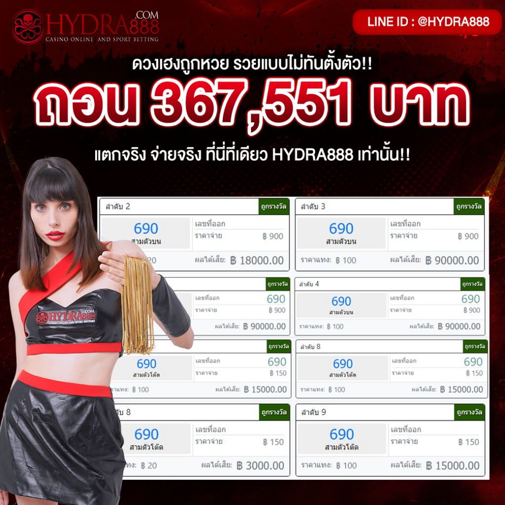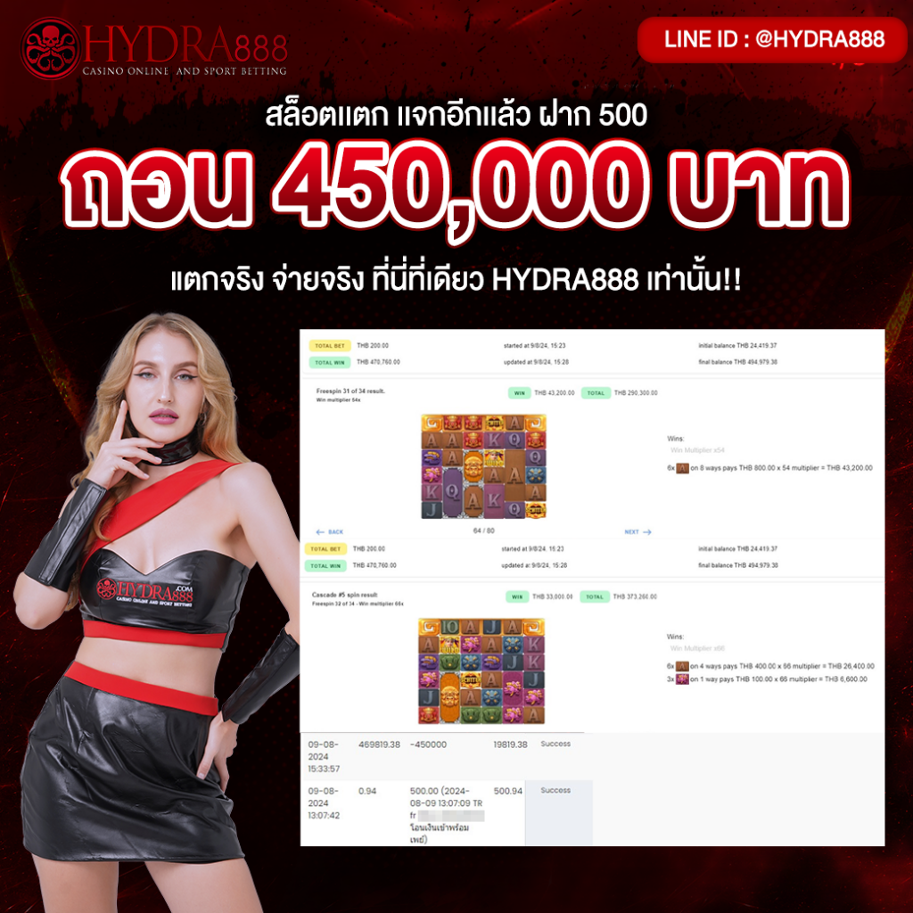 HYDRA888.COM เว็บพนันออนไลน์อันดับ 1 ของเอเชีย องค์กรเรารวบรวม คาสิโนออนไลน์อย่างครบถ้วน ทั้งคาสิโนสด เกมส์สล็อตออนไลน์ พร้อมทั้งตัวเกมส์ใหม่แบบ อี-สปอร์ต เพื่อมอบความหลากหลายให้ท่านได้ใช้บริการ ด้วยวิทยาการที่ล้ำหน้าขององค์กร ด้วยระบบฝาก-ถอน Auto เพียงแค่10วิ เร็วที่สุดในเอเชีย ตลอด24ชั่วโมง รองรับทุกอุปกรณ์และทุกแพล็ตฟอร์ม สิทธิพิเศษมากมาย ไม่ว่าจะแจกเครดิตฟรีไม่ต้องฝาก โบนัส 100% รางวัลแนะนำเพื่อน และแจกทองทุกเดือน องค์กรไฮดร้า สโลแกนของเรา ตัด 1 หัว แยกเป็น 2 หัวไม่มีวันตาย เปรียบเหมือนการบริการสมาชิกทุกท่านไม่วันทอดทิ้งและดูแลดูที่สุด พนักงาน call center ที่พร้อมให้บริการตลอด 24 ชั่วโมง ทักไลน์มาได้เลย !!